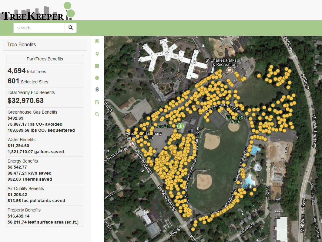 The St. Charles Parks and Recreation Department maintains an up-to-date inventory of all publicly-owned trees within our parks thanks to a TRIM Grant Award from the Missouri Department of Conservation. The inventory was built by Davey Resource Group using their Tree Keeper Software. This was completely updated in May 2018 and is now available to view online.