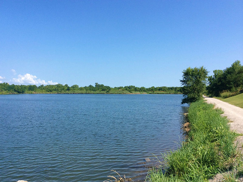 Fountain Lakes Park has a very unique landscape with natural area to enjoy a possible glimpse of wildlife. All lakes are open for fishing and stocked annually. Fountain Lakes Park is also unique with a hiking/biking trail underneath Interstate 370 to connect the two sides of the Park.