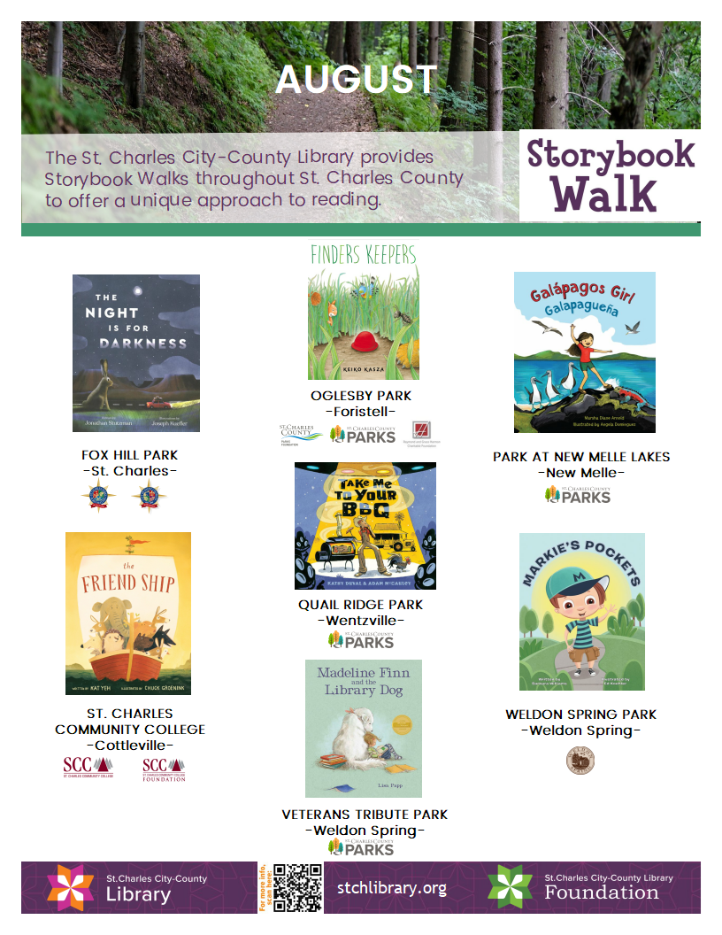 Fox Hill Park is divided into two main sections that are linked by a paved trail. This park consists of an open native landscape area with a loop trail around two interconnected lakes and also along this trail is our Storybook Walk. The Storybook Walk is a partnership between the St. Charles Parks and Recreation Department and the St. Charles City-County Library Foundation. The 16 post walk is located around the two lakes in the park and is updated monthly.