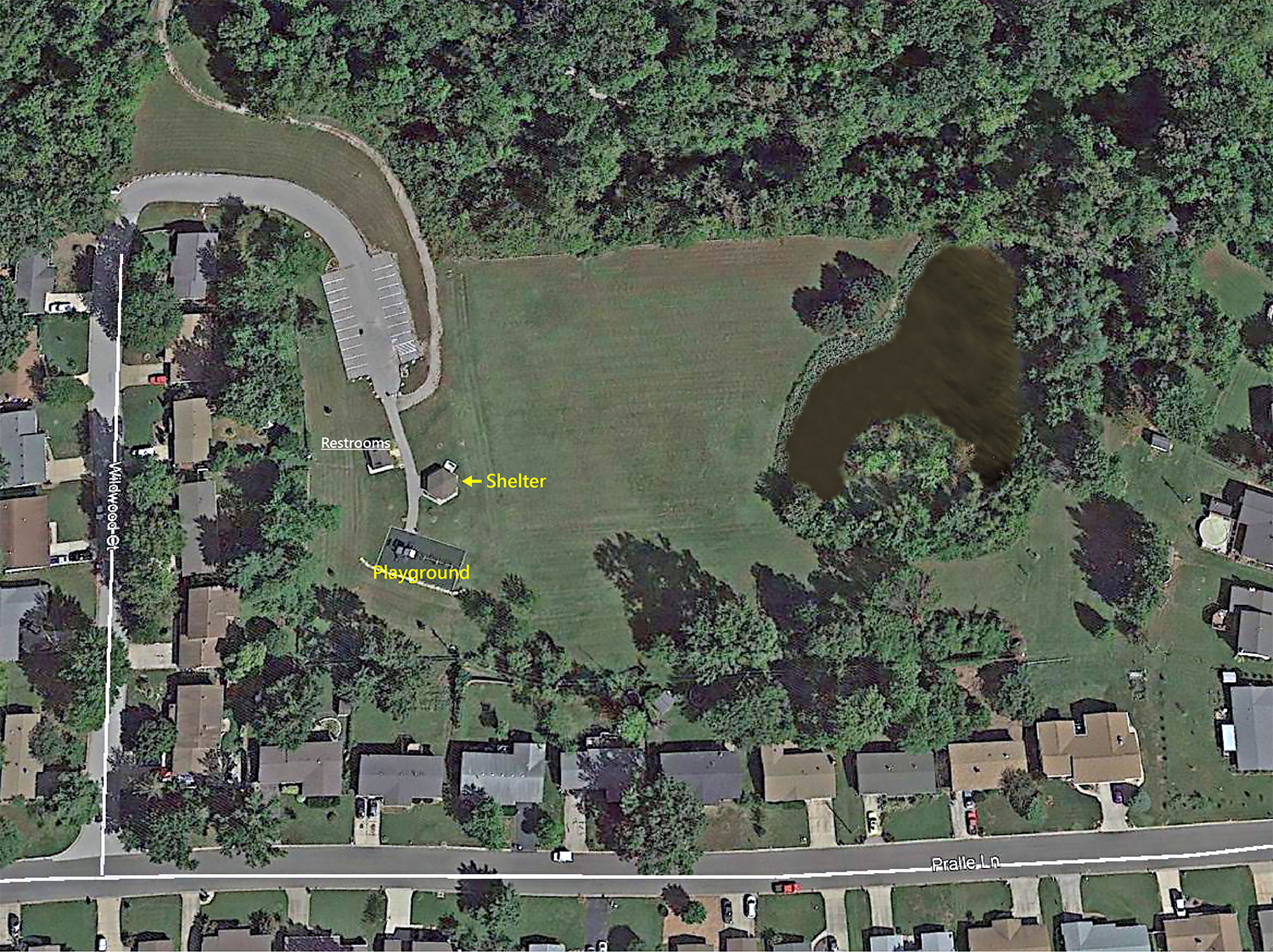 Heatherbrook Park is an open, flat park space with a playground, pavilion and a small fishing pond. It also includes trails that connects it to Webster Park.