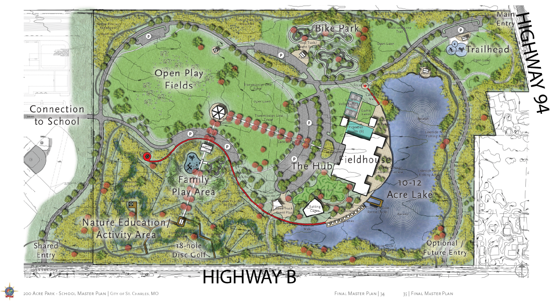 In 2019, the City of St. Charles by and through its Parks and Recreation Board, purchased 97 acres of property located off Highway 94 and Highway B. This property is adjacent to the 96.9 acres that was purchased by the Orchard Farm School District. The combined properties will include amenities that can be utilized by both parks and schools creating a unique opportunity to collaborate and create a space for the school district and community to enjoy.