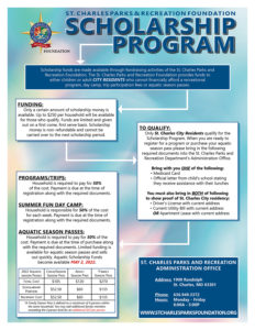 The St. Charles Parks and Recreation Foundation and the St. Charles City Council have partnered to provide scholarships to St. Charles City residents needing financial assistance for recreational programs. To learn more about this scholarship program please review the flyer below: